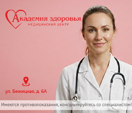 • Заботясь о своем здоровье, нужно внимательно относиться к тем специалистам, которые ведут диагностику, назначают лечение и процедуры. Привычные поликлиники с очередями и общим подходом к пациентам остались в прошлом, теперь за здоровьем населения присматривают частные медицинские учреждения, которые стремятся оснастить свои центры новейшим оборудованием и высококлассными врачами. Удобство размещения одном здании диагностических кабинетов разной направленности и сдачу анализов в удобное время оценили уже тысячи людей в Брянске. Все это можно найти в «Академии здоровья» - частной многопрофильной клинике, соответствующей высоким стандартам здравоохранения. Центр расположен по адресу: г. Брянск, Советский район, ул. Бежицкая, д.6А.