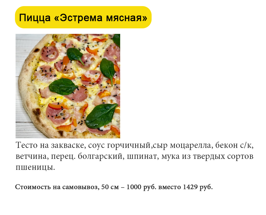 Стоимость на самовывоз, 50 см – 1008 руб. вместо 1439 руб.NEW Пицца «Эстрема мясная»
