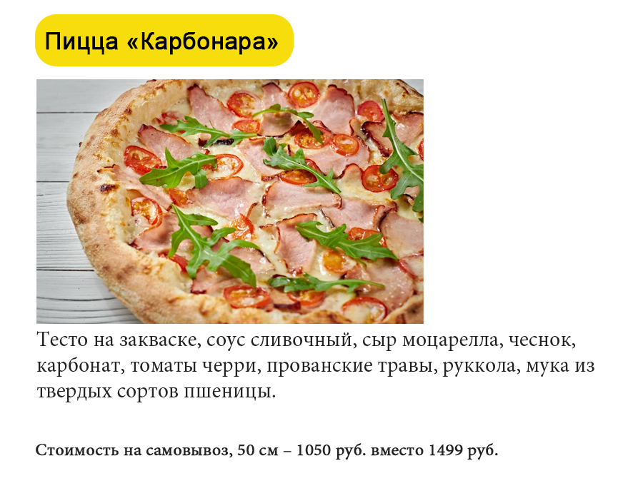 Стоимость на самовывоз, 50 см – 1106 руб. вместо 1579 руб.Пицца «Карбонара»