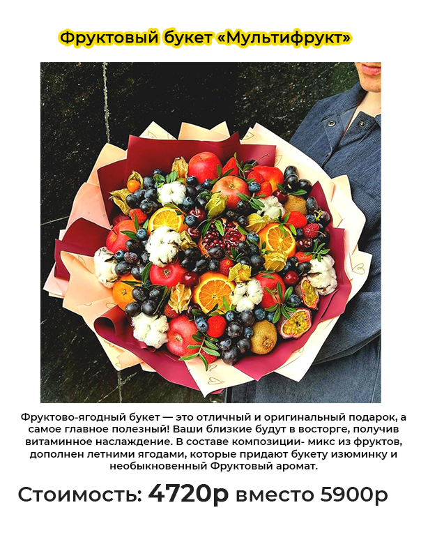 • Фруктовый букет «Мультифрукт» - 4720 руб. вместо 5900 руб. (Купон за 219 руб.)