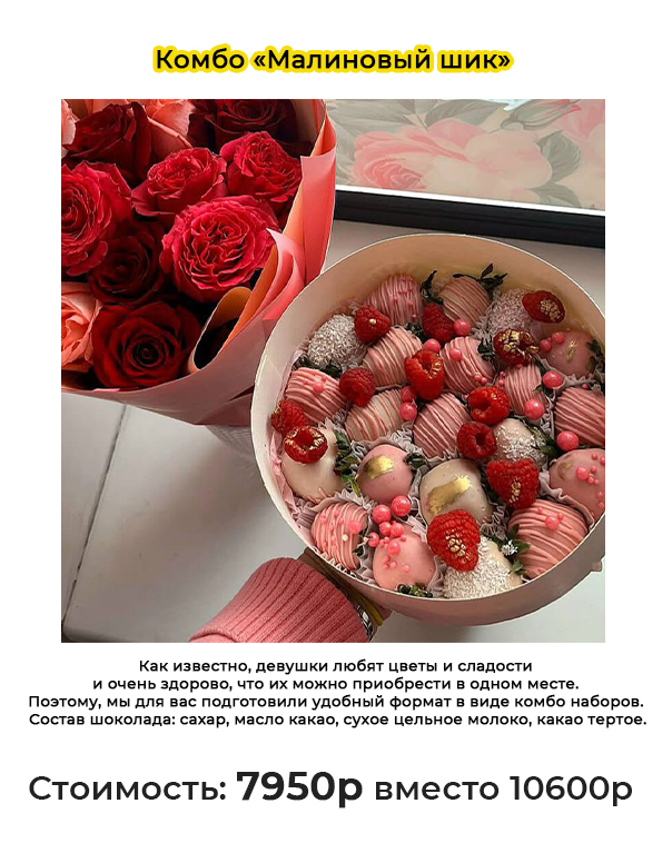 • Комбо «Малиновый шик» - 7950 руб. вместо 10 600 руб. (Купон за 529 руб.)