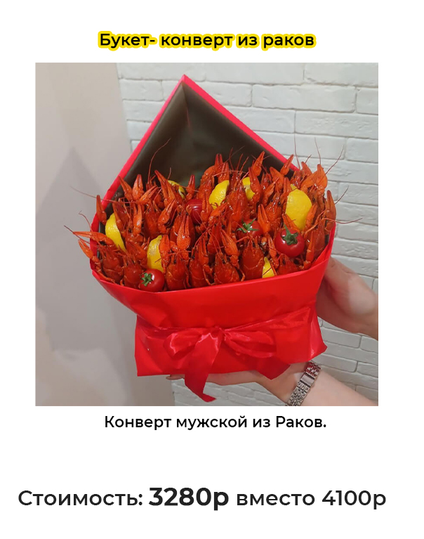 • Букет-конверт из раков - 3280 руб. вместо 4100 руб. (Купон за 119 руб.)