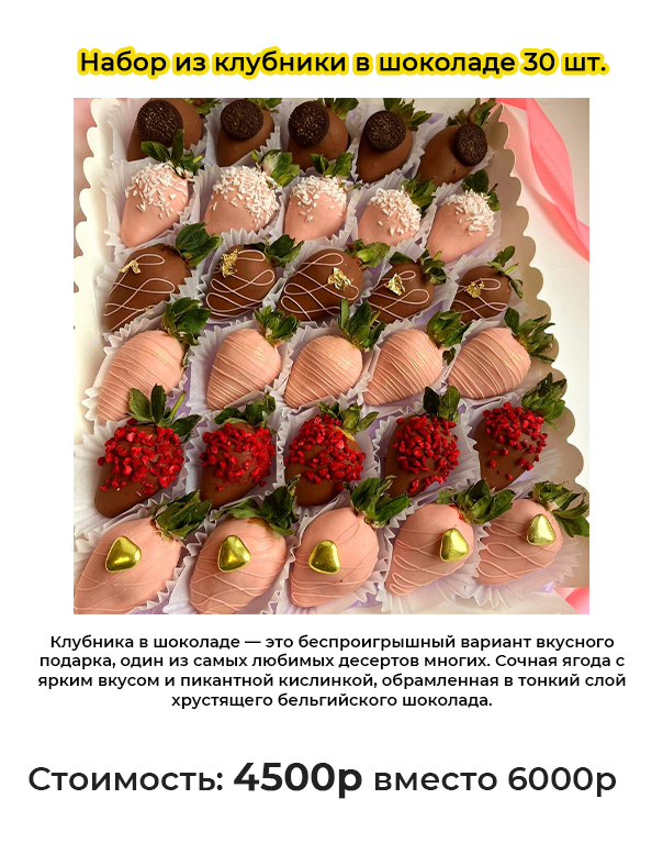 • Набор из клубники в шоколаде, 30 шт. - 4500 руб. вместо 6000 руб. (Купон за 219 руб.)