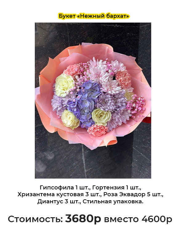 • Букет «Нежный бархат»- 3680 руб. вместо 4600 руб. (Купон за 159 руб.)