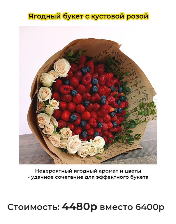 • Ягодный букет с кустовой розой - 4480 руб. вместо 6400 руб. (Купон за 399 руб.)