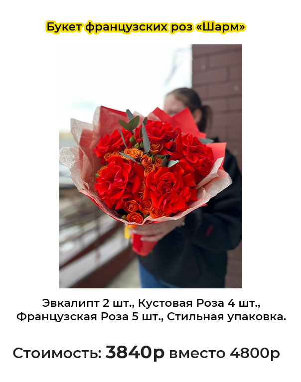 • Букет французских роз «Шарм» - 3840 руб. вместо 4800 руб. (Купон за 159 руб.)
