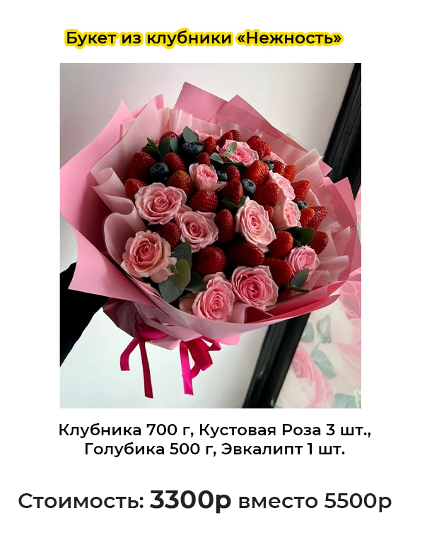 • Букет из клубники «Нежность» - 3300 руб. вместо 5500 руб. (Купон за 399 руб.)