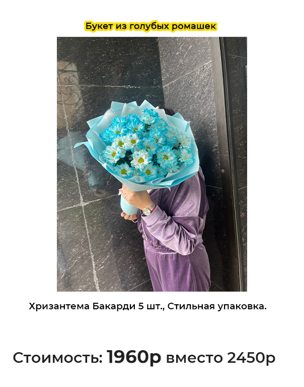 • Букет из голубых ромашек- 1960 руб. вместо 2450 руб. (Купон за 69 руб.)
