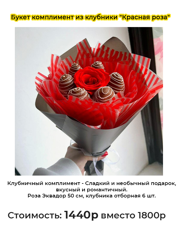• Букет комплимент из клубники "Красная роза" - 1440 руб. вместо 1800 руб. (Купон за 69 руб.)