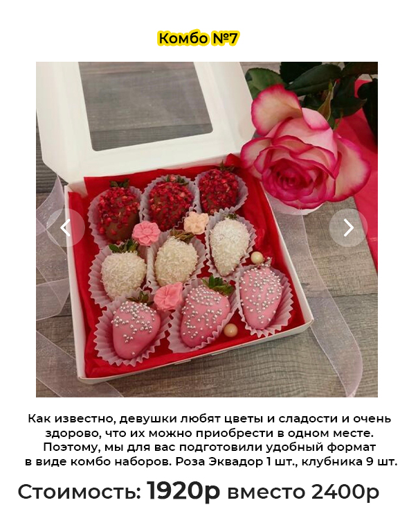 • Гарантия свежести ингредиентов: Используем только лучшие и свежие ягоды, цветы и шоколад.