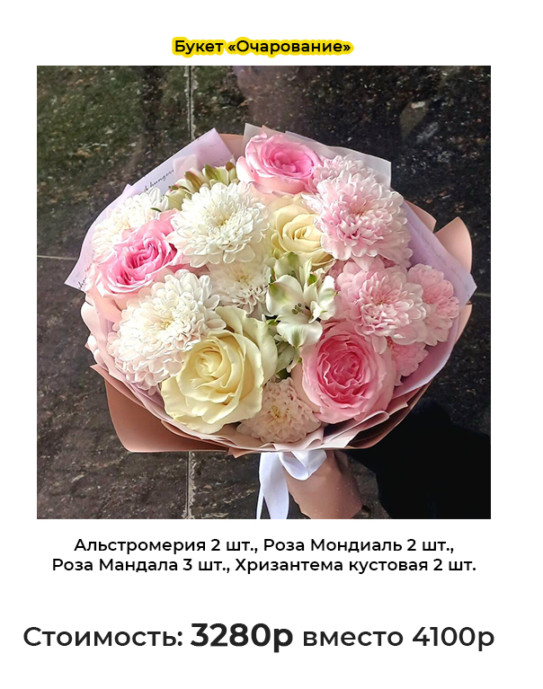 • Букет «Очарование»- 3280 руб. вместо 4100 руб. (Купон за 119 руб.)