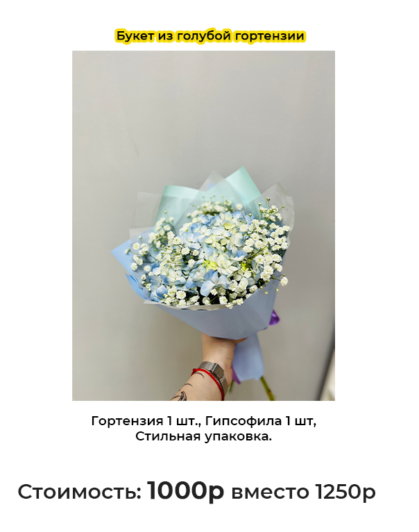 • Букет из голубой гортензии - 1000 руб. вместо 1250 руб. (Купон за 39 руб.)