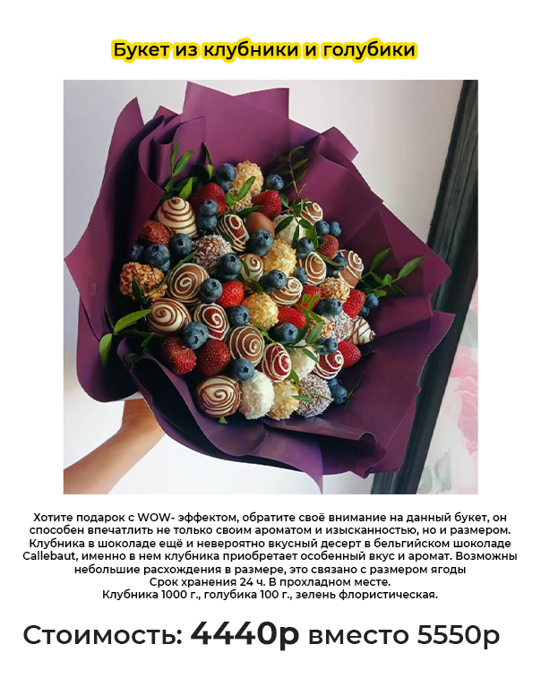 • Букет из клубники и голубики - 4440 руб. вместо 5550 руб. (Купон за 159 руб.)