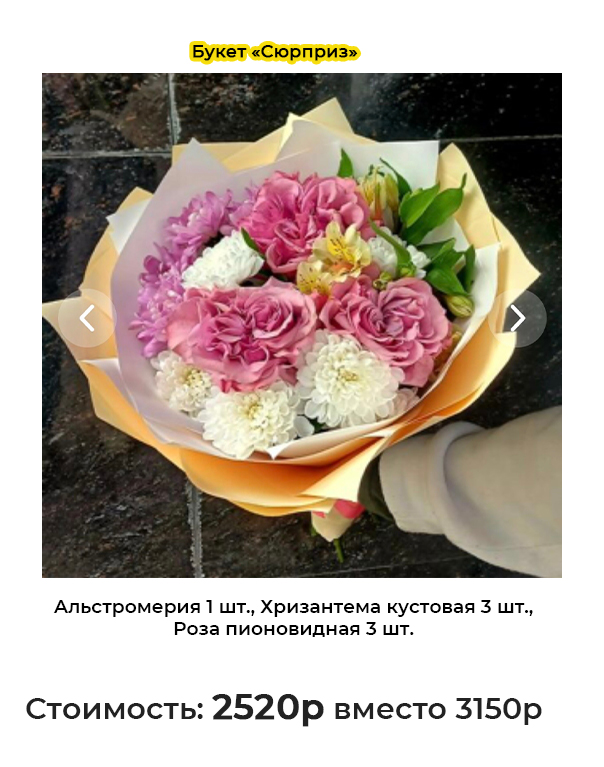 • Букет «Сюрприз»- 2520 руб. вместо 3150 руб. (Купон за 99 руб.)