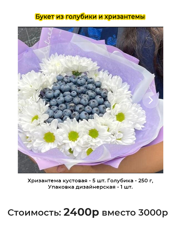 • Букет из голубики и хризантемы - 2400 руб. вместо 3000 руб. (Купон за 99 руб.)