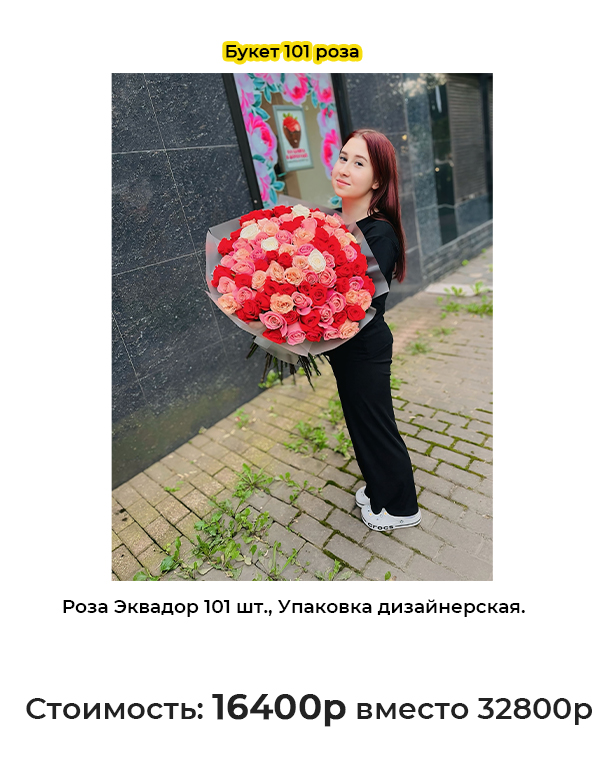 • Букет 101 роза- 16 400 руб. вместо 32 800 руб. (Купон за 2999 руб.)