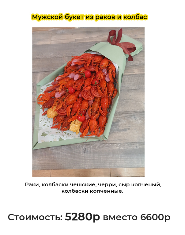 • Мужской букет из раков и колбас - 5280 руб. вместо 6600 руб. (Купон за 219 руб.)