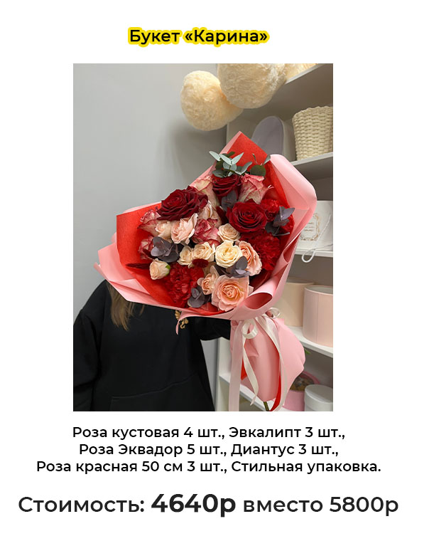 • Букет «Карина»- 4640 руб. вместо 5800 руб. (Купон за 159 руб.)