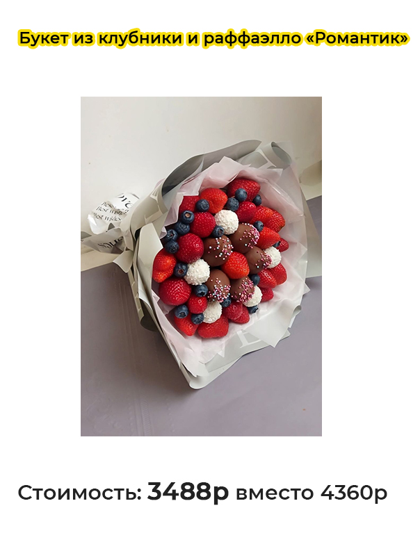 • Букет из клубники и раффаэлло «Романтик» - 3488 руб. вместо 4360 руб. (Купон за 119 руб.)
