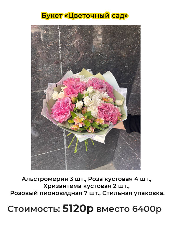• Букет «Цветочный сад»- 5120 руб. вместо 6400руб. (Купон за 219 руб.)