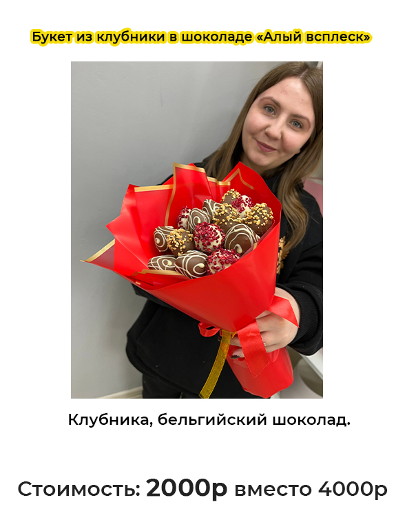 • Букет из клубники в шоколаде «Алый всплеск» - 2000 руб. вместо 4000 руб. (Купон за 399 руб.)