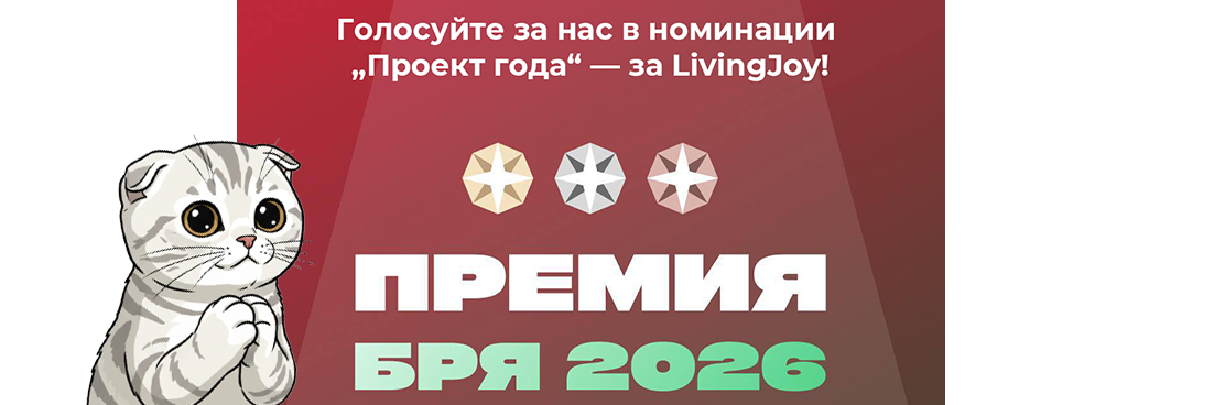 Голосуйте за нас в номинации „Проект года“ — за LivingJoy!(Голосование проходит в телеграме через бот https://t.me/BRYAaward_bot в нем нажать на МЕНЮ, там появится опция проголосовать, номинация в которой мы участвуем "Проект года" )