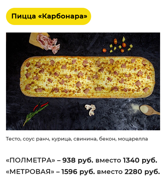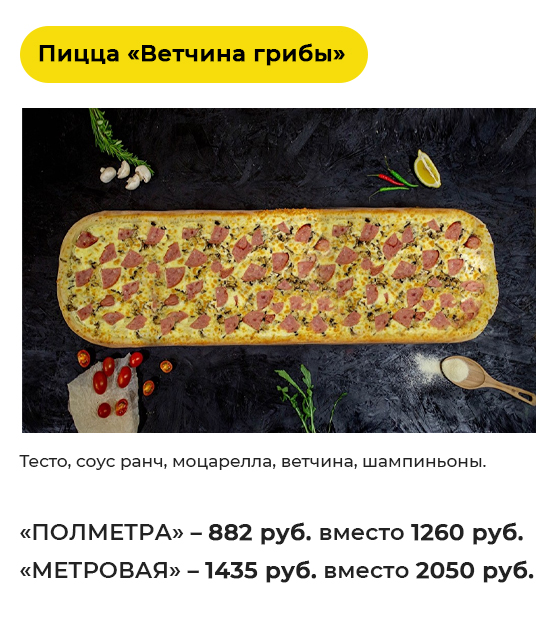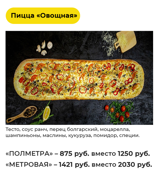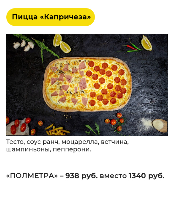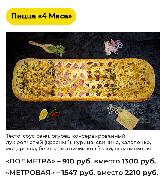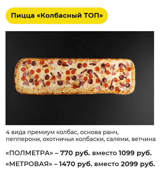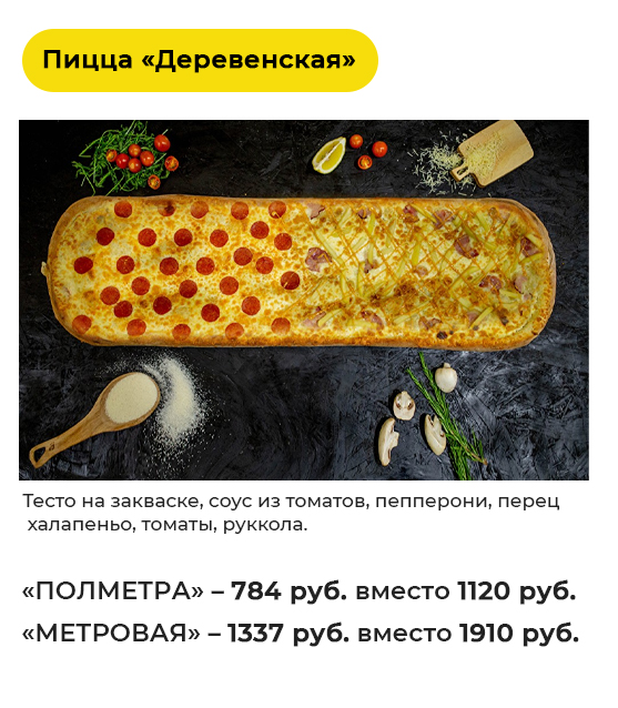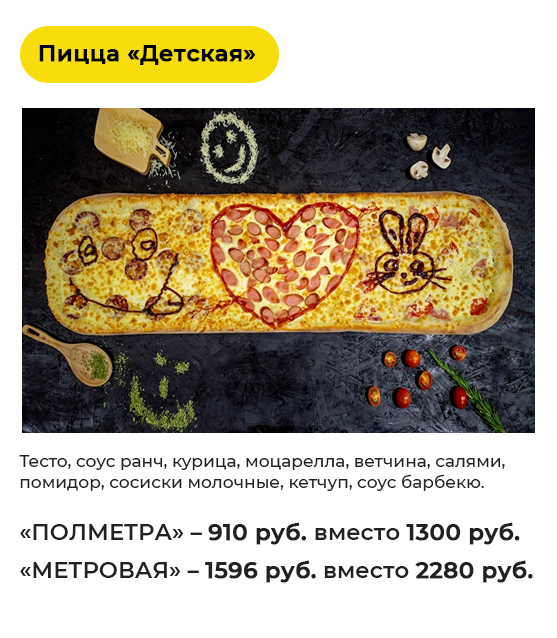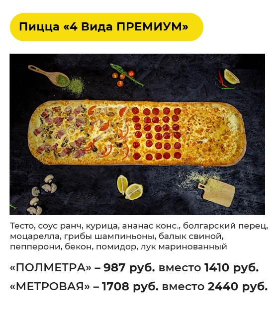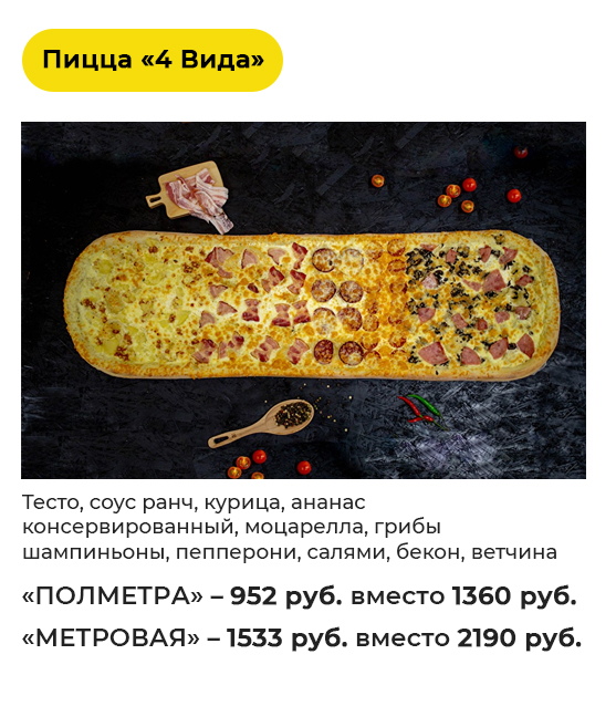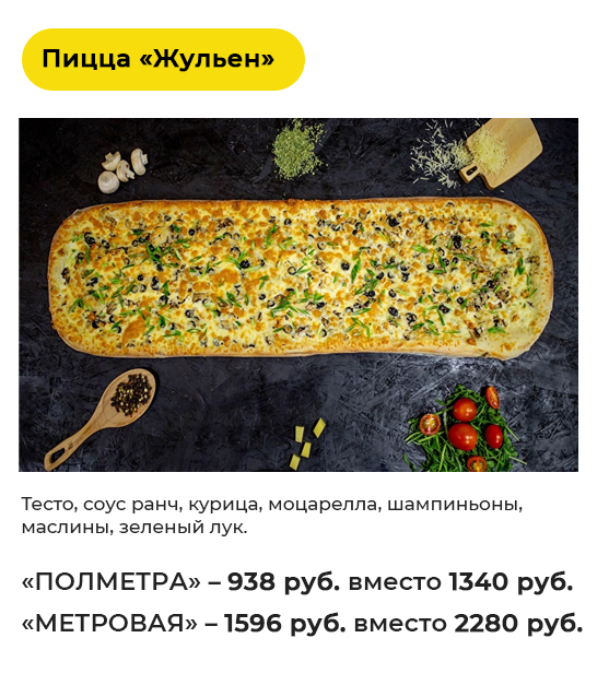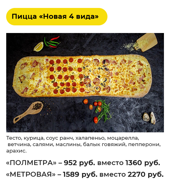 • 1 купон = 1 пицца со скидкой (2 купона = 2 пиццы со скидкой и т.д.)