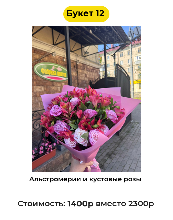 Букет 12 «Альстромерии и кустовые розы» - 1400 руб. вместо 2300 руб. (Купон за 139 руб.)