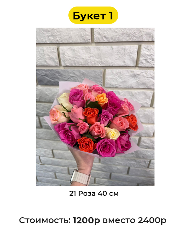Букет 1 «21 Роза 40 см» - 1200 руб. вместо 2400 руб. (Купон за 219 руб.)