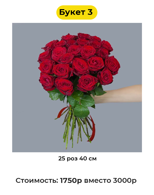 Букет 3 «25 роз 40 см» - 1750 руб. вместо 3000 руб. (Купон за 219 руб.)