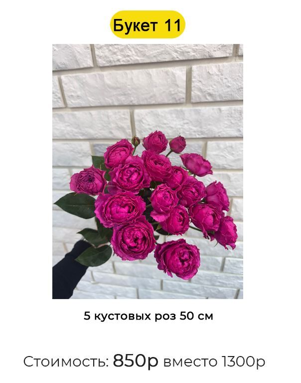 Букет 11 «5 кустовых роз 50 см» - 850 руб. вместо 1300 руб. (Купон за 69 руб.)