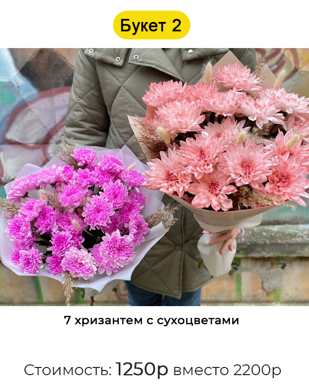 Букет 2 «7 хризантем с сухоцветами» - 1250 руб. вместо 2200 руб. (Купон за 199 руб.)