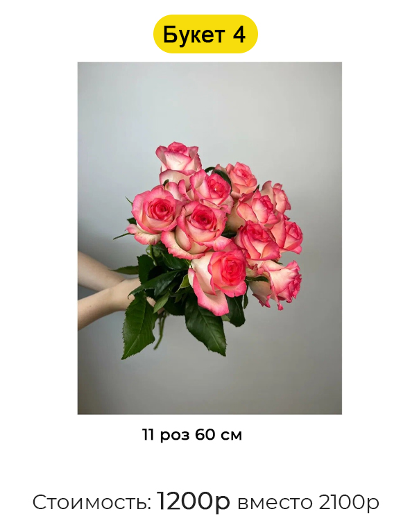 Букет 4 «11 роз 60 см» - 1200 руб. вместо 2100 руб. (Купон за 149 руб.)