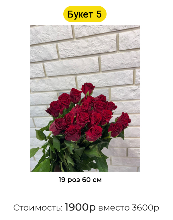 Букет 5 «19 роз 60 см» - 1900 руб. вместо 3600 руб. (Купон за 299 руб.)