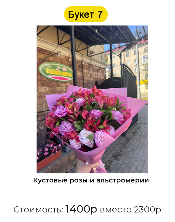 Букет 7 «Кустовые розы и альстромерии» - 1400 руб. вместо 2300 руб. (Купон за 199 руб.)