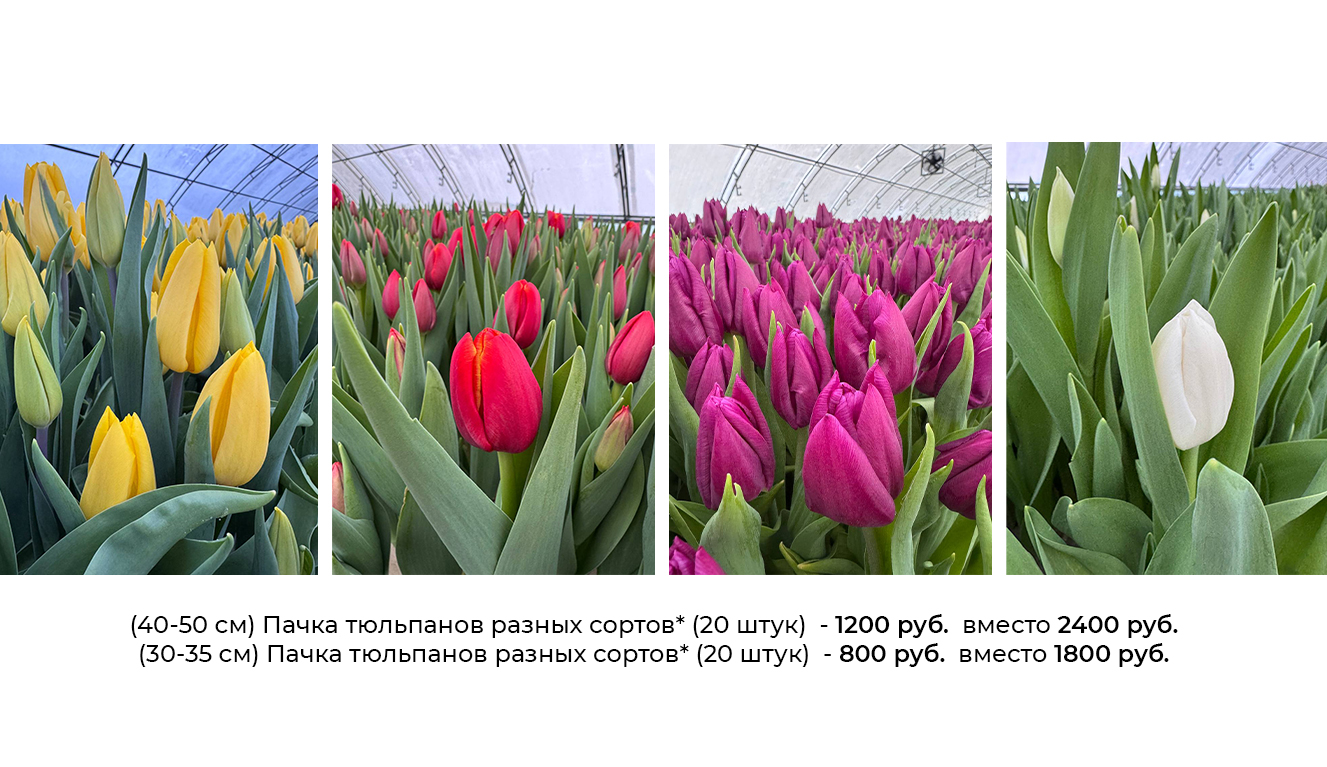 БОНУС: При покупке более 5 пачек (по 20 шт.) тюльпанов действует доп. скидка.