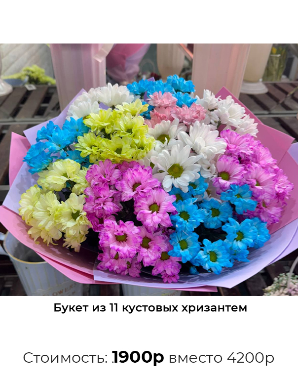 • Букет из 11 кустовых хризантем - 1900 руб. вместо 4200 руб. (Купон за 399 руб.)