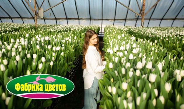 «Фабрика цветов» - тюльпаны, хризантемы со скидкой до 50%