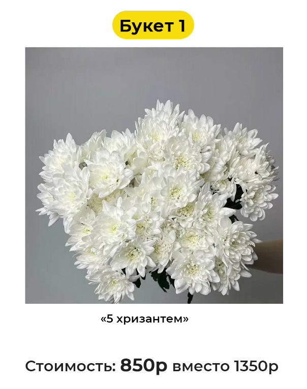 • Букет 1 «5 хризантем» - 850 руб. вместо 1350 руб. (Купон за 119 руб.)