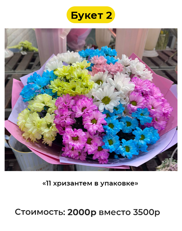 • Букет 2 «11 хризантем в упаковке» - 2000 руб. вместо 3500 руб. (Купон за 249 руб.)