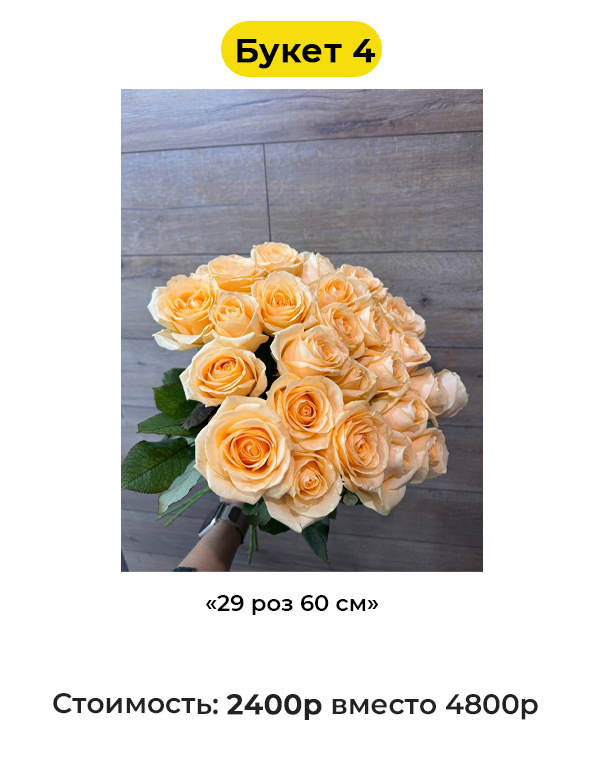 • Букет 4 «29 роз 60 см» - 2400 руб. вместо 4800 руб. (Купон за 479 руб.)