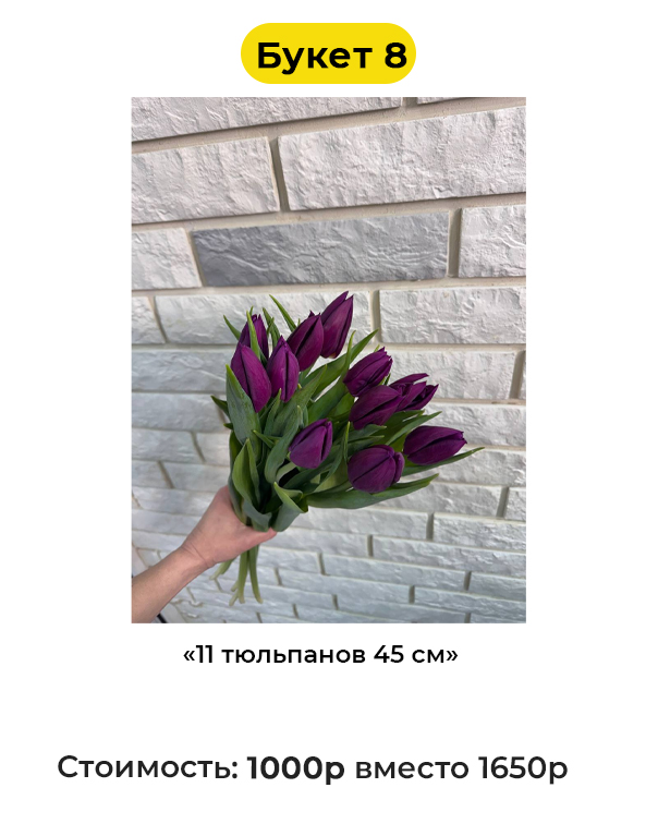 • Букет 8 «11 тюльпанов 45 см» - 1000 руб. вместо 1650 руб. (Купон за 99 руб.)