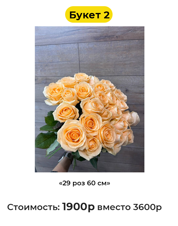 • Букет 2 «29 роз 60 см» - 1900 руб. вместо 3600 руб. (Купон за 299 руб.)