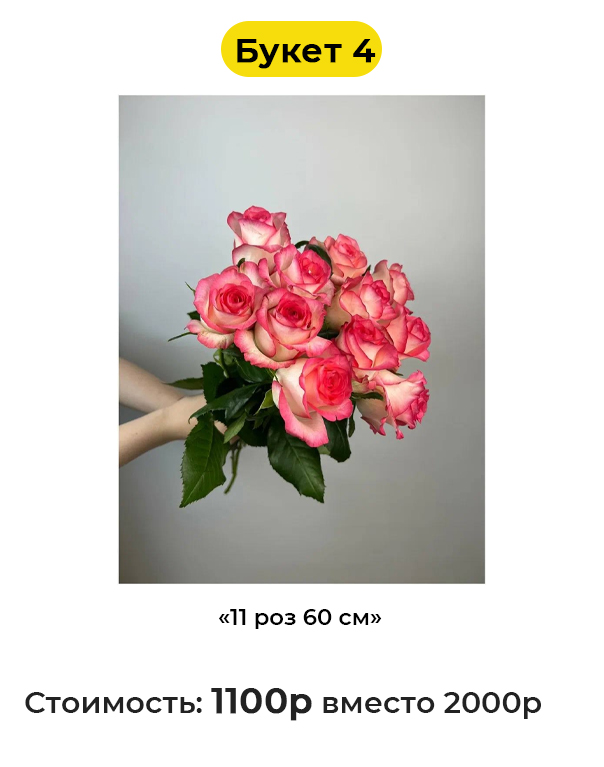 • Букет 4 «11 роз 60 см» - 1100 руб. вместо 2000 руб. (Купон за 149 руб.)