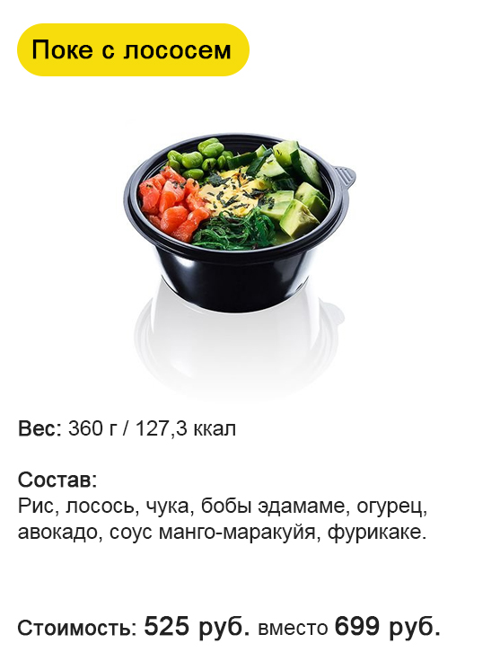 • Поке с лососем 360 г – 524 руб. вместо 699 руб.
