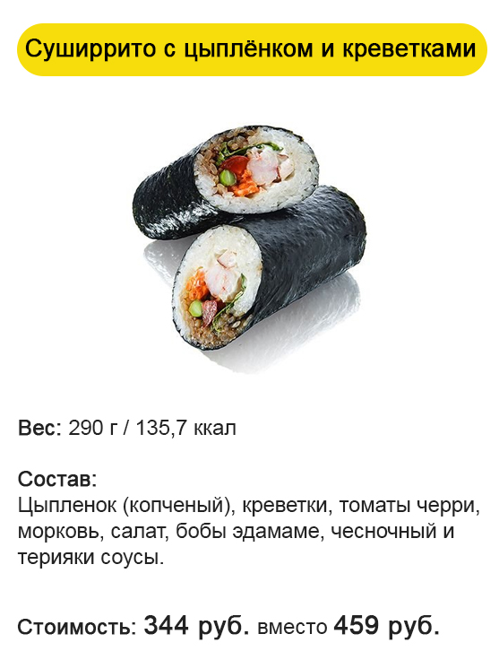 • Суширрито с лососем 280 г - 374 руб. вместо 499 руб.