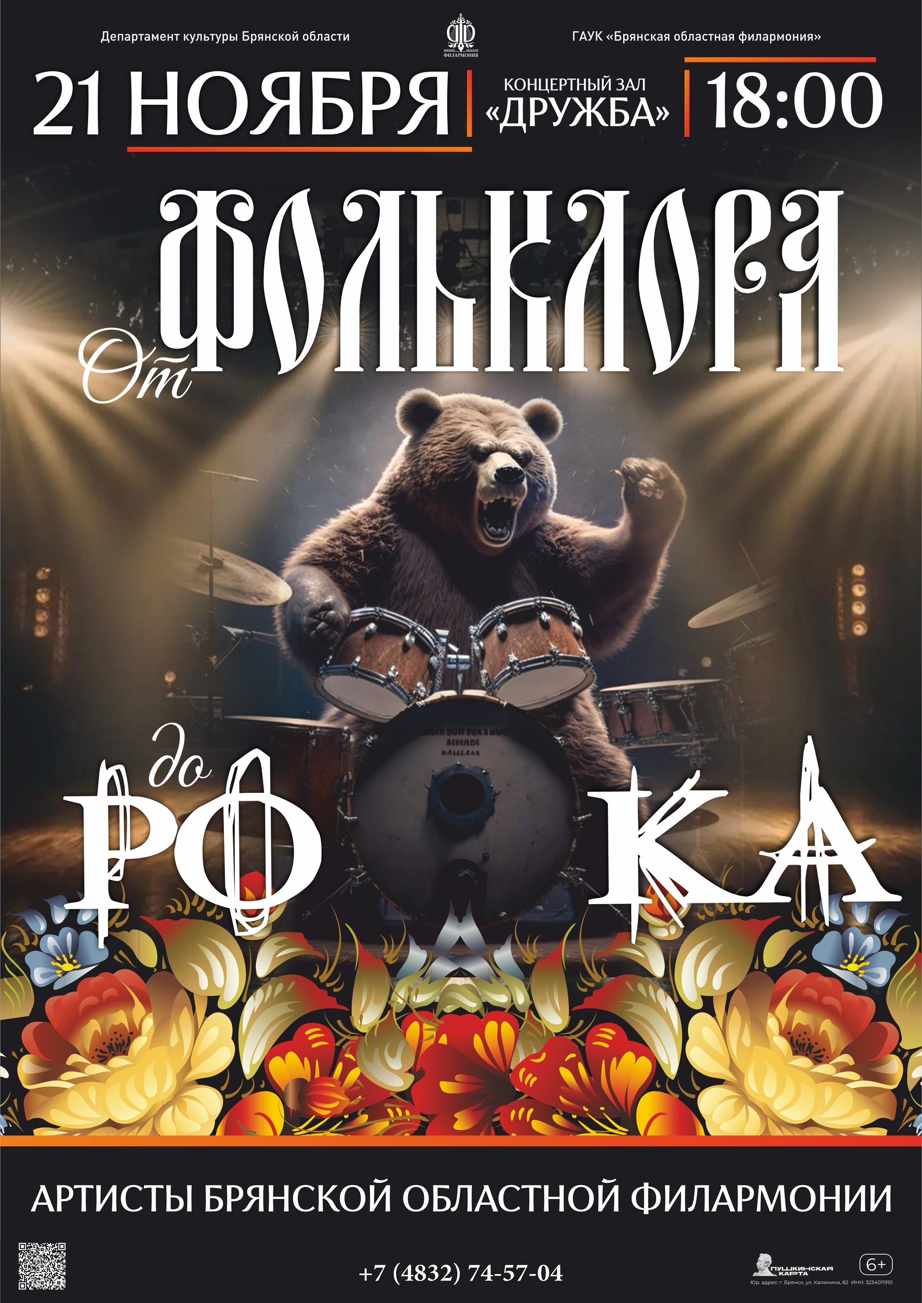 21 ноября в 18:00 в к/з «Дружба» Брянская областная филармония представит программу «От фольклора до рока».