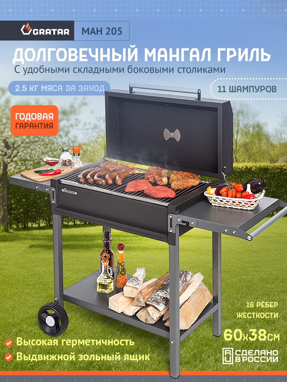 Ознакомиться с товаром можно по ссылке: https://www.ozon.ru/product/mangal-gril-gratar-man-205-s-kryshkoy-barbekyu-polkami-zolnym-yashchikom-dlya-dachi-674617660/Стоимость - 8806 руб. вместо 12580 руб.