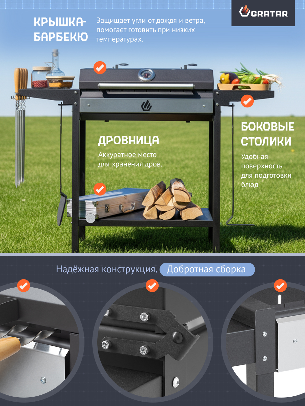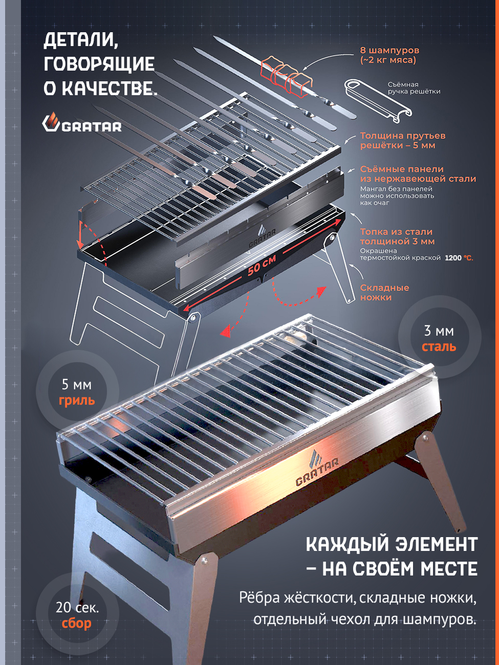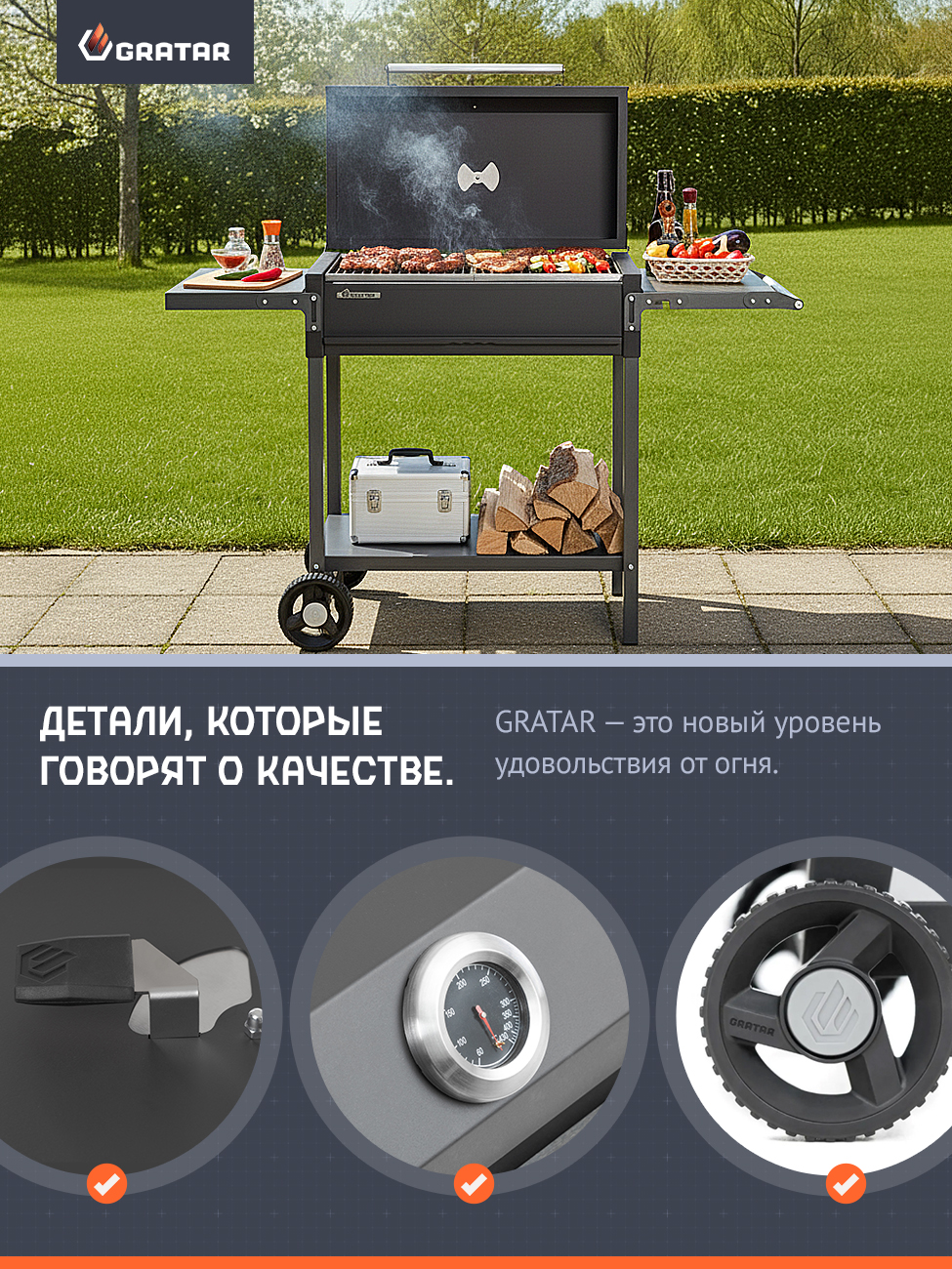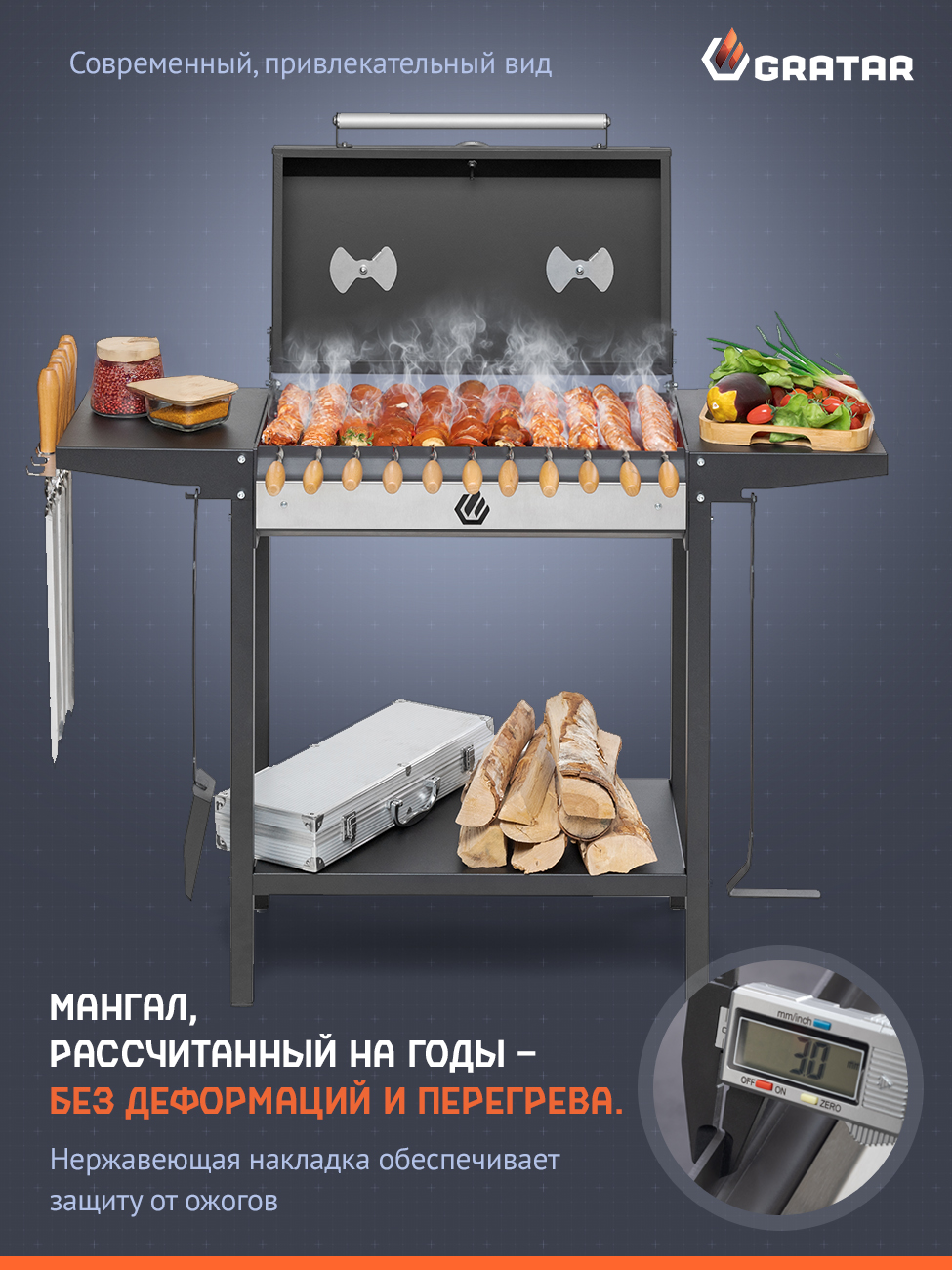 С 2005 года мы выпускаем грили, мангалы и аксессуары к ним под торговой маркой GRATAR. Накопленный опыт и любовь к делу позволяют нам изготавливать продукцию стабильно высокого качества, востребованную покупателями как в РФ, так и за её пределами. Уделяя внимание деталям при проектировании, мы разрабатываем современную функциональную продукцию, в производстве которой применяются передовые технологии обработки металла.