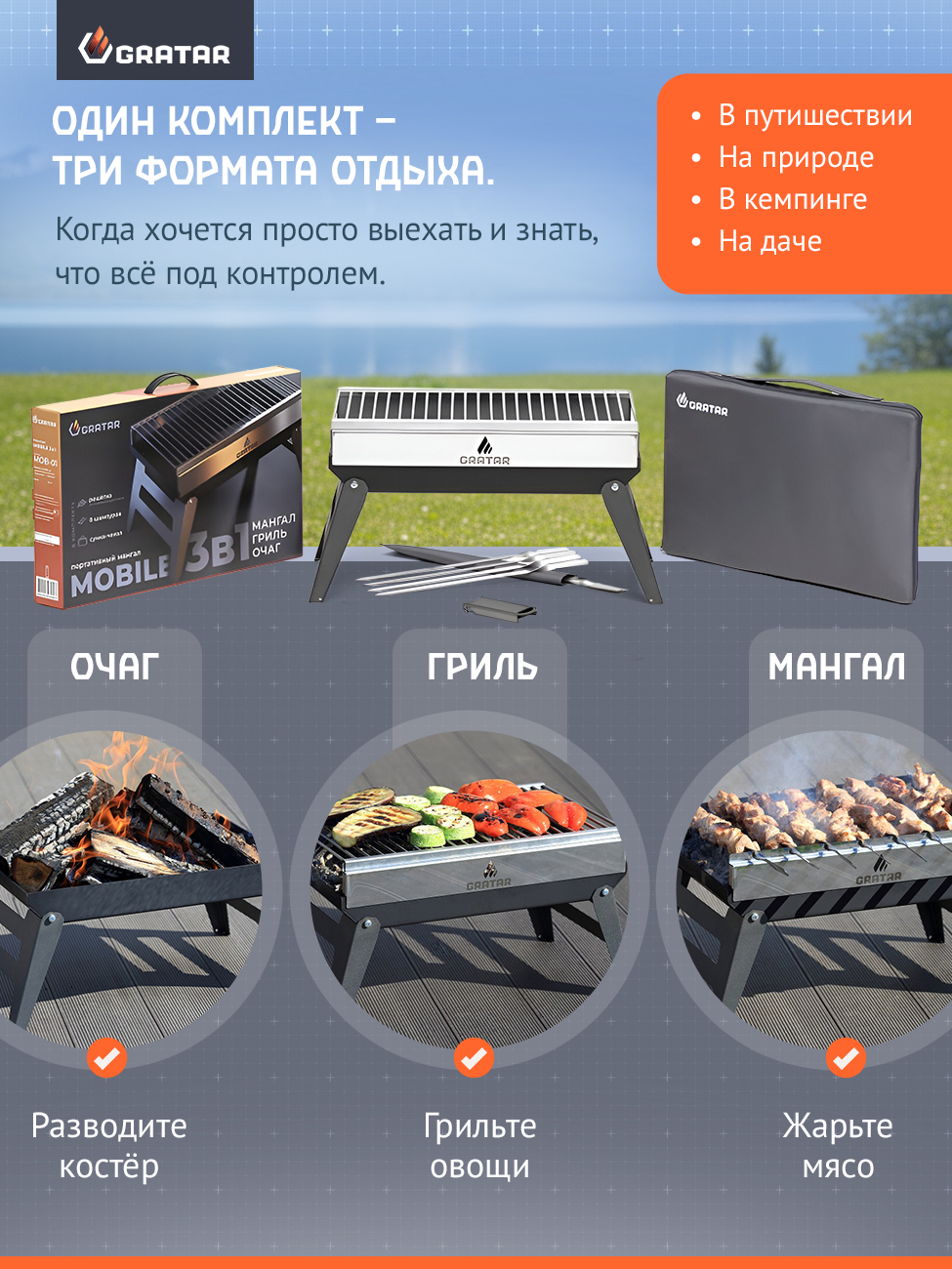 - ✓ СКЛАДНОЙ МОБИЛЬНЫЙ МАНГАЛ 3-В-1 GRATAR MOBILE MOB-01